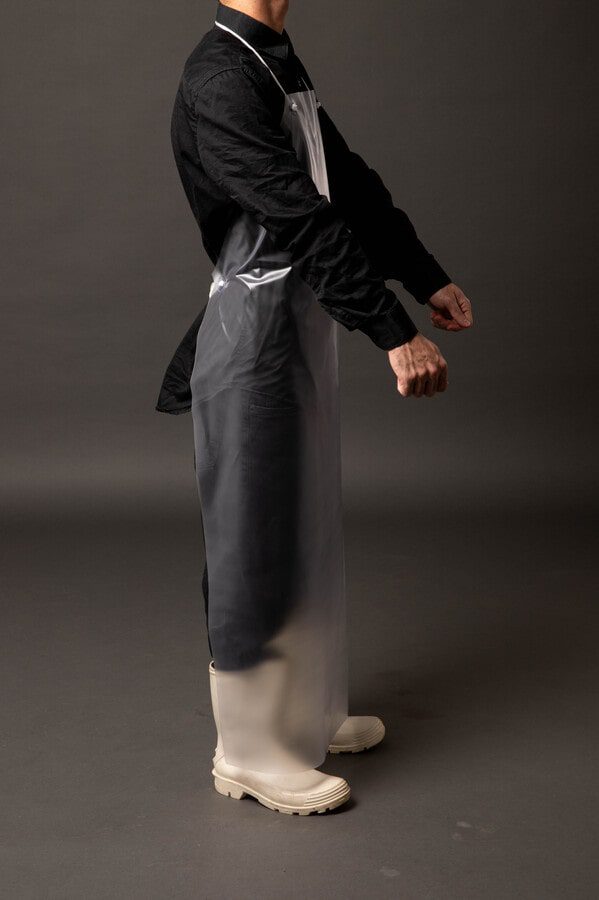 Os nossos aventais não possuem nenhuma costura, sua face externa é lisa e não há saliência, nem reentrância, o que impede a retenção de resíduos.