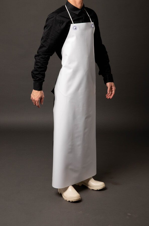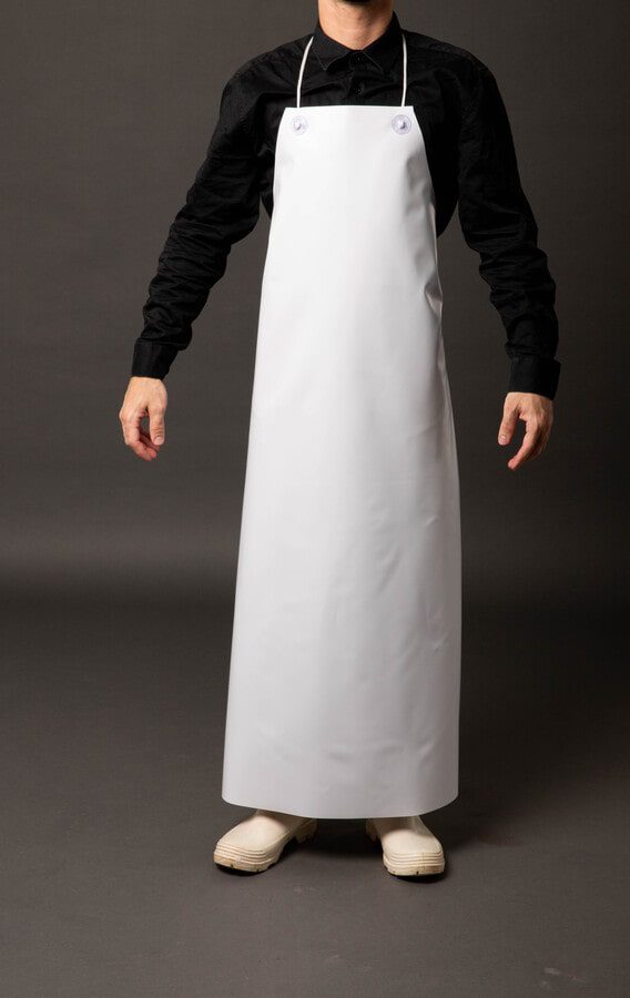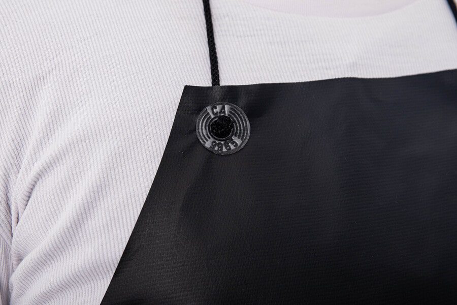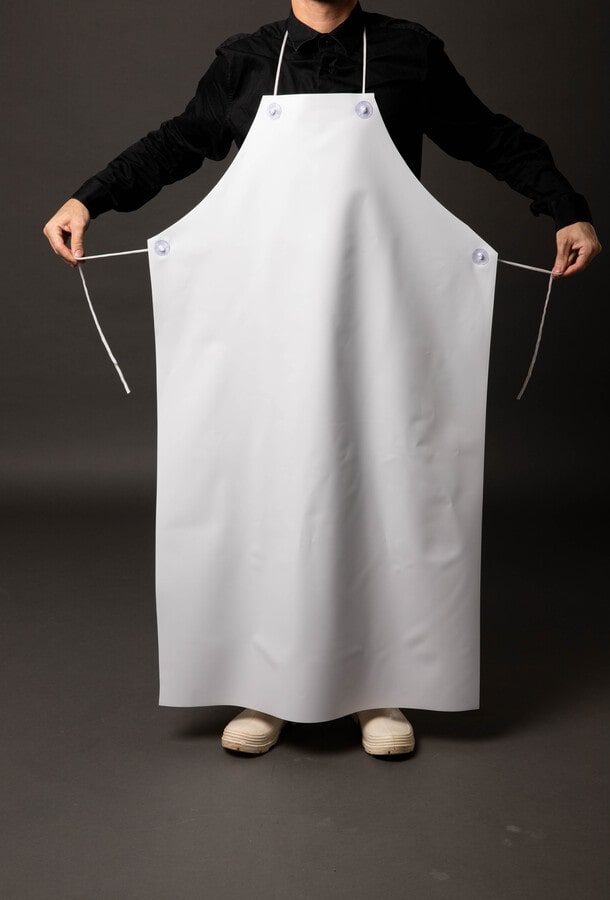 O material vínill conhecido por ser durável e resistente a água. Ele é projetado para proteger o usuário de líquidos, sujeira, óleo, graxas e outros.